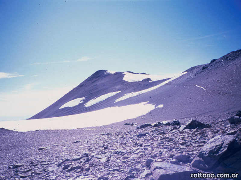 Desde el estacionamiento siguiendo el curso del arroyo Covunco, en dirección Este, primero por la margen Norte (Izquierda) y luego por la margen Sur (derecha) se arriba al Campo Base (3.600 m.s.n.m.), en el que existe un precario refugio, posición S 36º 33’ 47” / W 70º 26’ 12”. Desde el C.B. se debe ascender en dirección Norte, por un sendero bien marcado que nos lleva al Campo Alto, (3.800 m.s.n.m.) ubicado en la posición S 36º 39’ 39” / W 70º 26’ 01”.Existen algunas pircas de reparo para armar las carpas. Desde este Campo alto, se asciende en dirección Oeste. Se accede a una antecima. De allí el camino asciende hasta la cima (4.702 m.s.n.m.) ubicada en la posición S 36º 38’ 27” / W 70º 25’ 44”. El descenso es por la misma ruta.
