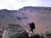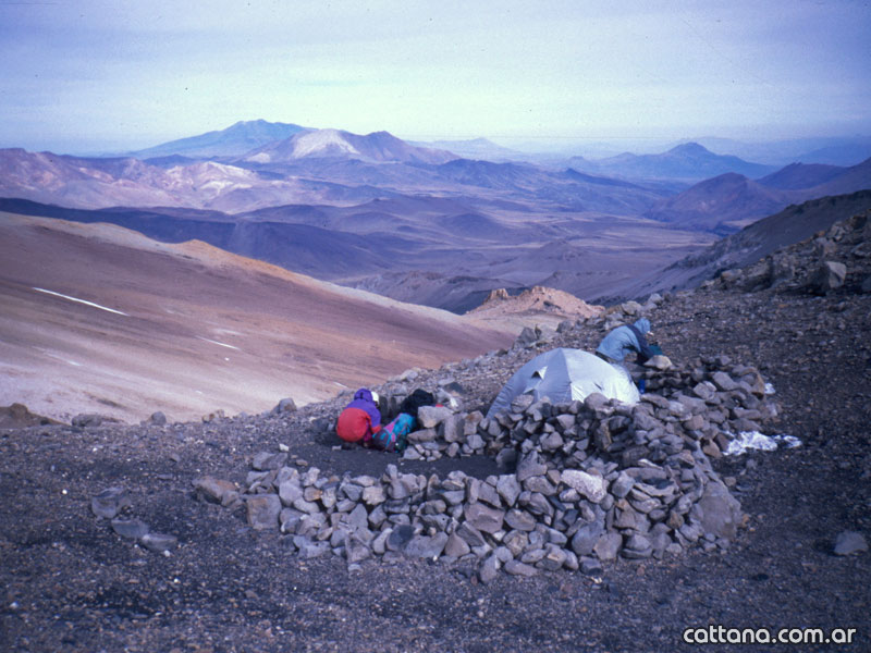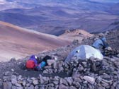 Algunos escaladores montan un campamento alto, aquí no hay agua. Hay que derretir nieve.