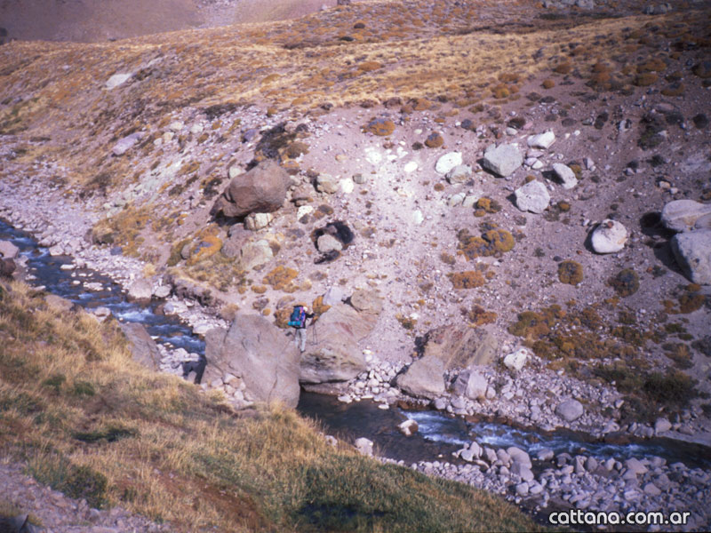 No consumir el agua de la laguna de color turquesa que se encuentra al lado del refugio. Existe una vertiente de agua al Oeste del Campo Base.
