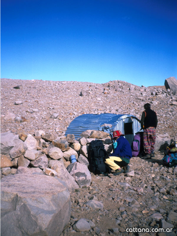 En el campamento base existe un refugio de chapa que puede estar habitable. Es de construcción precaria y tiene piso de ripio.