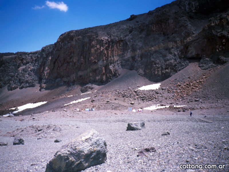 El campamento de altura conviene establecerlo en la zona del Refugio Federación, evitar la zona de La Hoya por ser un centro de baja presión (puna).