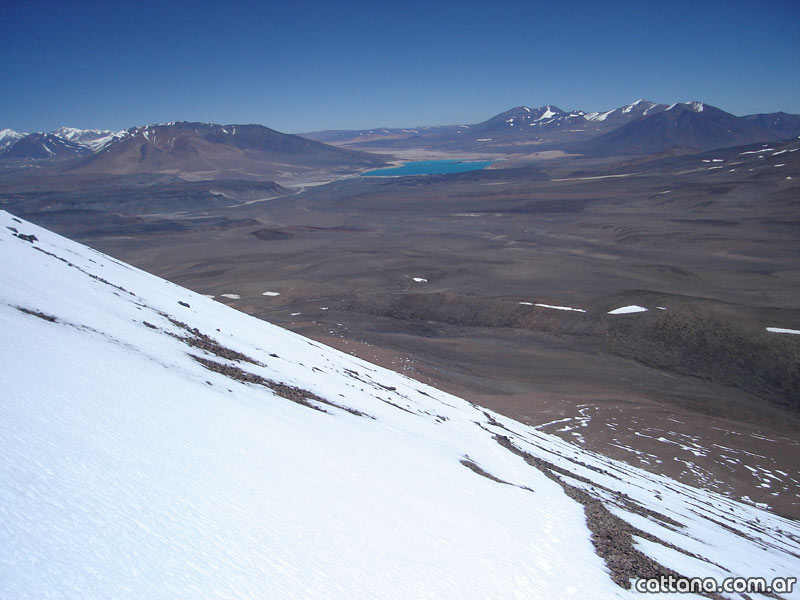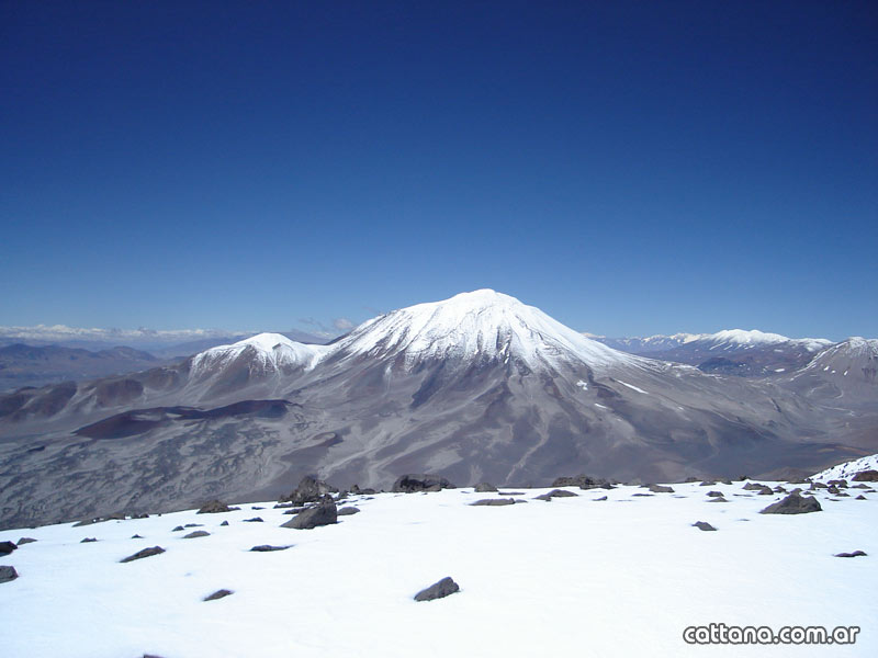 Desde el Refugio número 6 (Argentina), ubicado al costado de la ruta 60 (S 26º 52′ 400″ W 68º 17′ 947″), a una altura de 4765 m.s.n.m., hay que tomar en dirección SSE, lugar donde se dejan los vehículos (S 26º 52′ 993″ W 68º 17′ 708″), desde allí, se asciende por un camino bien marcado, el que se abandona luego (S 26º 54′ 049″ W 68º 17′ 109″) girando hacia el E alcanzándose el Campo 1 a 5.211 m.s.n.m. (S 26º 54′ 160″ W 68º 16′ 961″). En este lugar hay agua (enero 2008). De allí en dirección E, hasta el waypoint (S 26º 54′ 323″ W 68º 15′ 914″) en donde se toma la dirección S. Se atraviesan dos calderas volcánicas, por la izquierda, siempre en dirección S.Se asciende a la cumbre (S 26º 55′ 174″ W 68º 15′ 727″) 6018 m.s.n.m., de la que se tiene una excelente vista de todas las montañas de la zona destacándose al Norte los cerros Dos Conos y al Sur el Incahuasi.- El descenso se realiza por la misma ruta.-