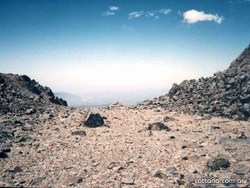 Desde el campo base, el que se monta en el lugar denominado Las Veguitas a una altura de 3.200 m.s.n.m., a orillas de un pequeño curso de agua, se debe tomar en dirección Oeste hacia una morrena que desciende de la meseta denominada Cancha de Futbol. SE asciende en zigzag por la misma hasta alcanzar la referida meseta. Una vez en la misma tomar en dirección Norte y ascender hasta la cumbre. El descenso es por la misma ruta.-