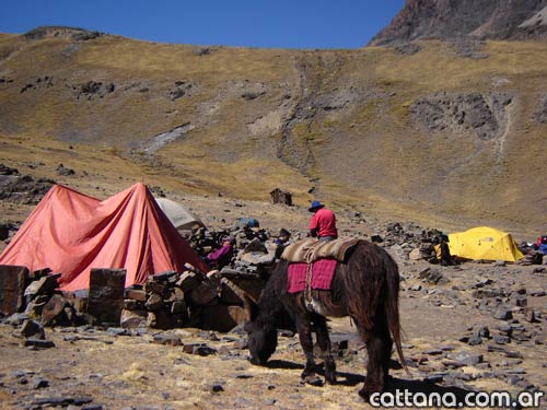 El campo base cuenta con baños con inodoros. Existe una manguera de la que se toma el agua para consumo.-